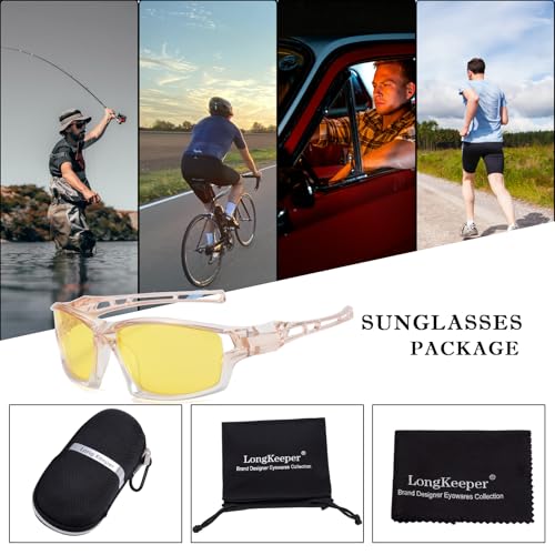 Long Keeper Polarized Night Vision Sunglasses Night Driving Glasses for Men Women Wrap Around Yellow Lens Cycling Sun Glasses 6