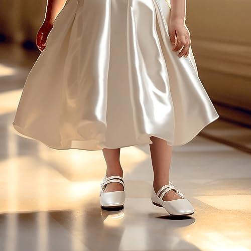 PANDANINJIA Naomi Girls Dress Shoes Mary Jane Ballet Flats Flower Girl Wedding Party Communion Shoes for Toddler Little Kid Big Kid 1