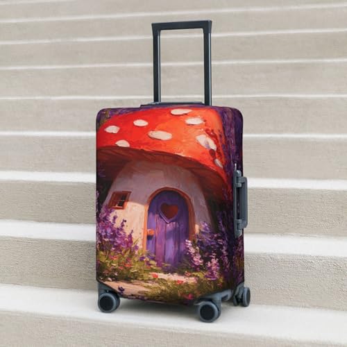 sought-after ! Whimsical Mushroom House Elastic Travel Luggage Covers Dustproof Scratch-Resistant Suitcase Protector Fit 22-24 Inch