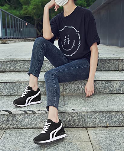 AONEGOLD Women's Hidden Wedge Sneakers High Heeld Lace Up Fashion Lightweight Walking Shoes Platform Sneakers 6