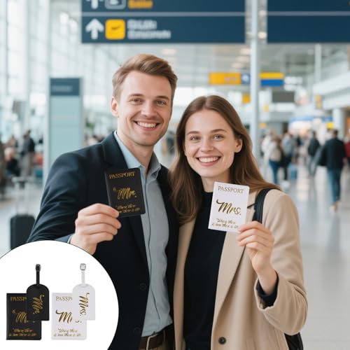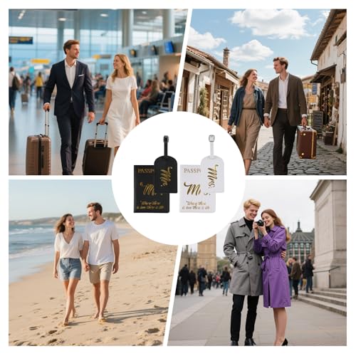 • Package Contents: This set includes 2 premium luggage tags and 2 passport wallets (black and white). Good as a thoughtful honeymoon gift for newlyweds, combining style and functionality for romantic getaways