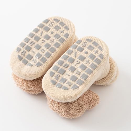 Baby Crawling Socks for 1-3 Years Old Winter, Cute Bear Warm Thick Cotton Terry Floor Socks with Grips for Toddlers 5