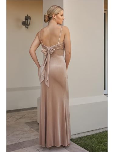 Bedlover Velvet Bridesmaid Dresses Back Self Tie Bow for Women Long Formal Party Gowns with Slit 5