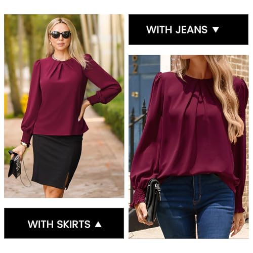 Kate Kasin Womens Dressy Business Casual Tops, Pleated Long Sleeve Shirts, Office Work Chiffon Blouses 2