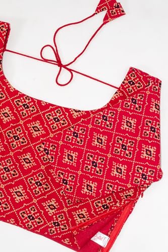 Chandrakala Cotton Printed Blouses for Women Sarees, Elbow Sleeves Ajrakh Print Crop top Choli (B223-P) 5