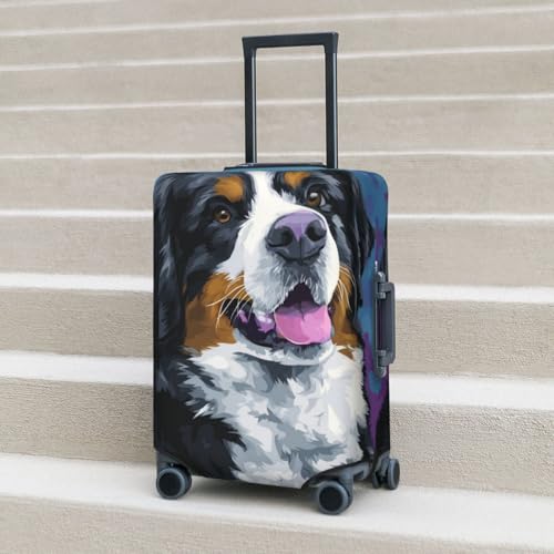 Cute And Happy Dog Elastic Travel Luggage Covers Dustproof Scratch-Resistant Suitcase Protector Fit 22-24 Inch