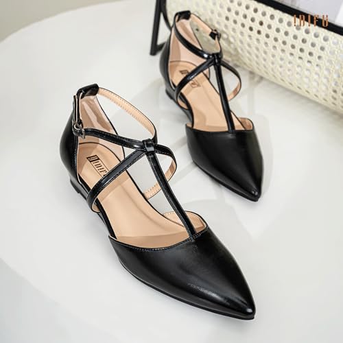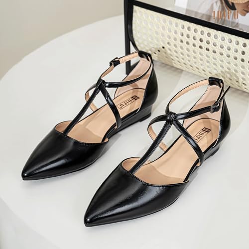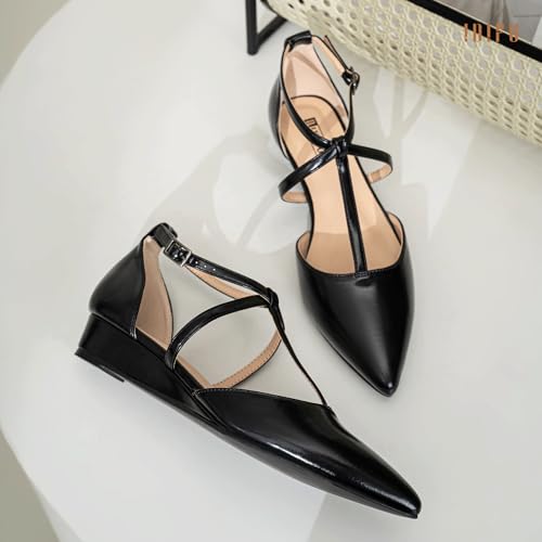 IDIFU Strappy Flat Shoes Pointed Closed Toe Dress Shoes for Women Buckle Ankle T Strap Wedge Flats Wedding Bride Bridal Guest Business Casual Office Prom Dressy cozy Formal Women's Flats Shoes