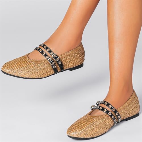 sought-after ! Women's Retro Cap Toe Flat Mary Janes Shoes Adjustable Buckle pleasant Breathable Slip On Ballet Flats velvety Sole Casual Dress Shoes for Work Office Outdoor Walking