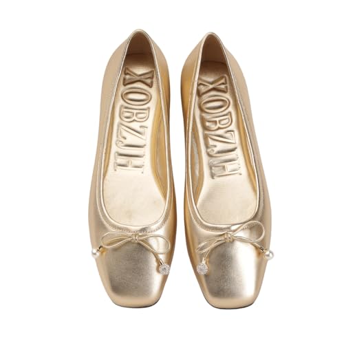 Why Choose XOBZJH Women's Bow Ballet Flat Shoes Metallic-Leather Dressy Shoes Square Toe Slip On Ballerina Walking Flats Shoes for Woman Comfort silky?