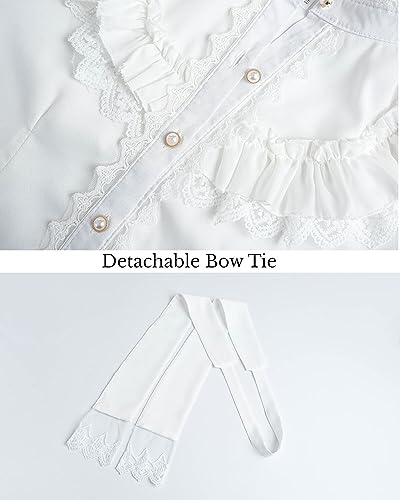 • Features: Stand-up Collar with Bowknot(removeable),Adorable Lantern Long Sleeves.Retro Lace Lolita Shirts