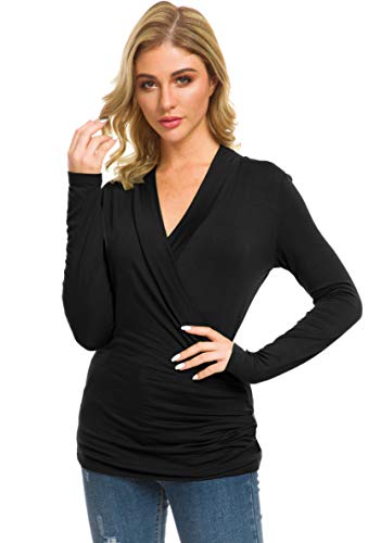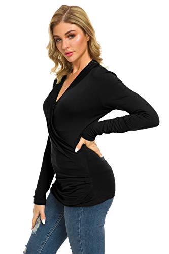 More information about Afibi Womens Slim Fitted Deep V Neck Cross Wrap Top Long Sleeve T-Shirts