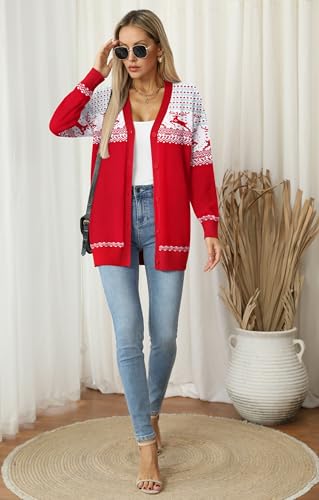 Jouica Women's Cute Cardigan Ugly Christmas Sweaters for Women 2024 Long Sleeve Funny Christmas Sweater