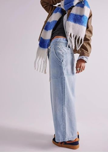 Fabric type: 70% Cotton,30% PolyesterOrigin: ImportedClosure type: DrawstringRise style: Mid RiseSize Guide:S=US 4-6, M=US 8-10, L=US 12-14, XL=US 16-18, XXL=20-22. The wide leg pants are made of denim fabric, offer a relaxed fit that keeps you soft all day.Features:Comfort baggy Jeans for women features mid-rise fit, drawstring waist, oversized patch pockets, pull-on design, slouchy, relaxed fit, wide-legs, ankle-length.Boyfriend jeans; womens straight leg jeans.Match: Vintage mid waisted jeans can be paired with simple t-shirts or shirts, or pairing them with a fitted top or a short jacket, match them with a pair of sneakers or casual shoes to showcase a different sense of fashionOccasions: Causal drawstring jeans for women is perfect for most occasion, such as daily wear, dates, party, concerts, beach, club, shopping, night out, travel, holiday, office, going out, lounge home.Garment Care:Machine wash is recommended with a laundry bag on the gentle cycle, wash separately and hang to dry. Perfect for everyday use. finest materials and excellent craftsmanship ensure long-lasting durability.