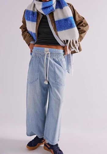 yoeasy Women's Wide Leg Jeans Mid Rise Stretchy Straight Leg Baggy Drawstring Casual Denim Pants