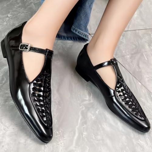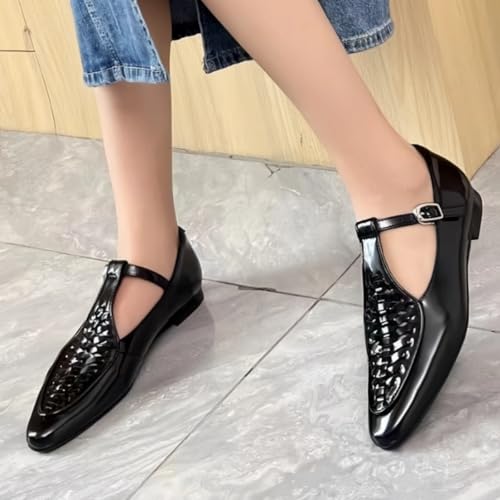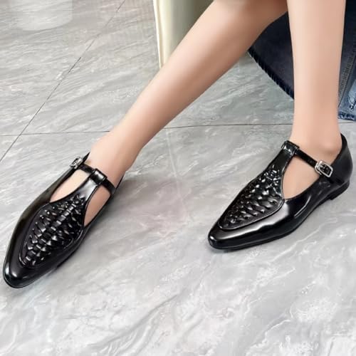 Chic Flats for Women with One-Strap Metal Buckle Pointed-Toe Genuine Leather Mary Jane Shoes Business 6