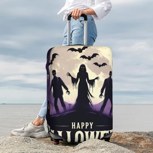 Elastic Materials: Our suitcase cover (No Suitcase) benefits from full round double stitching and high-elastic materials. This ensures your suitcase stays closed during your travels. Protect your luggage from scratches and never mix up your suitcase again with our distinctive patterns. This isn't just a simple luggage protector suitcase cover, itβs a style statementSize Options: Available in four sizes from S-XL. It fits 18-32 inch suitcases. Please refer to our size chart when picking the right suitable luggage protector suitcase cover for your needs. Please Note: This Halloween Happy Ghost luggage cover is suited for suitcases with the handheld part in the middle position onlyProduct Structure: Halloween Happy Ghost Luggage cover protector designed with one pull rod hole, one top hand hole, dual concealed hand holes, one zipper and one fixed buckle. It's easy to use, providing an exceptional luggage covers that fits your luggage, regardless of the carrying styleApplicable Scenes: Ideal for those who are always on the move, whether for travel or business. Our Halloween Happy Ghost suitcase covers for luggage serve as an effective protective layerSetup Instructions: Pull up the rod, fit the hole into the rod area, pull down the luggage protector covers, reveal the side hand hole, secure the bottom zipper and plug in the fixed buckle. An easy setup process that delivers superior protection for your luggage exterior excellent for everyday use. finest materials and excellent craftsmanship ensure long-lasting durability.