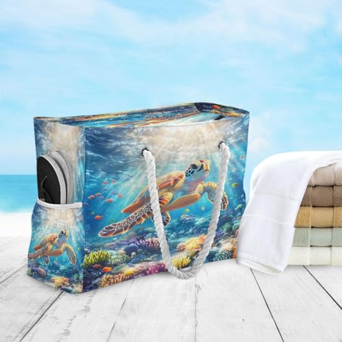Large Beach Bags Totes Canvas Tote Shoulder Bag Coral Sea Turtle Water Resistant Bags for Gym Travel Daily