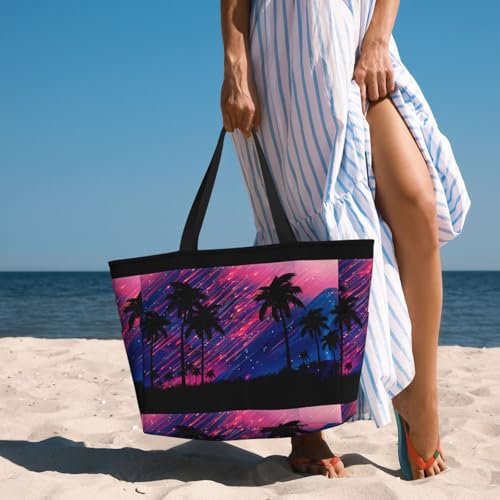 Palm Tree Shooting Star Print Large Beach Tote Bag for Women Extra Large Capacity Sandproof Waterproof Pool Bag Suitable for Swimming Pool Gym Groceries Travel