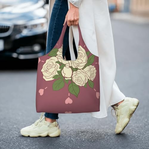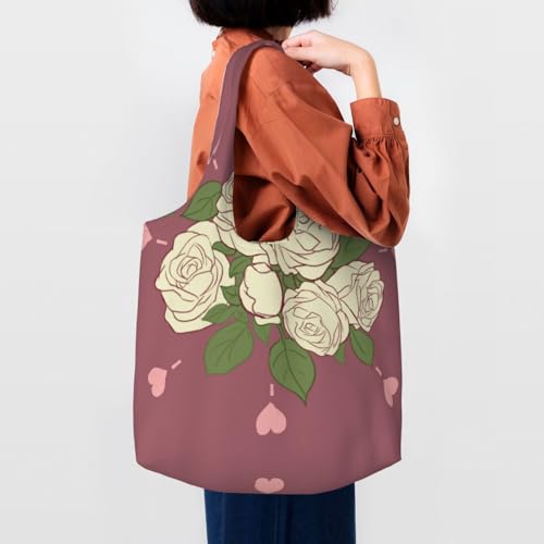 White Rose of Love Printed canvas bag-suitable for shopping bags, fashionable women's bags 2