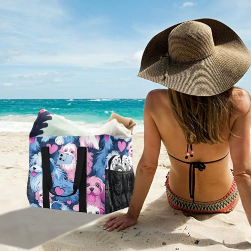 Nander Cute Cartoon Little Dog Foldable Tote Bag Waterproof Sandproof Women Beach Bag Handbag Gym Bag 6
