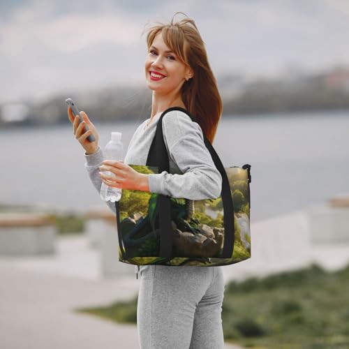 Laptop Tote Bag for Women Work - Deep Forest Stone Green Dragon Gym Bag for Women Men, Personal Item Crossbody Travel Bags Carry On, Overnight Weekender Bags for Women Travel 7