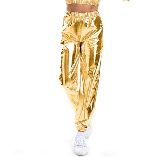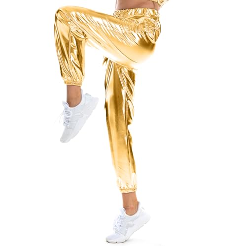 Women's Metallic Shiny Jogger Casual Holographic Color Streetwear Pants Hip Hop Fashion Smooth Elastic Trousers