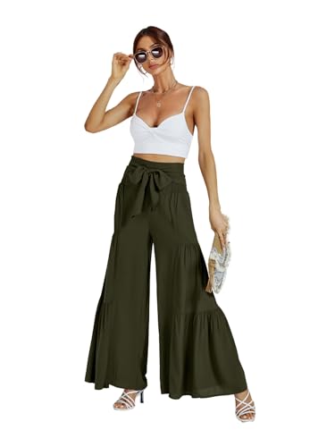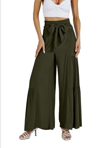 More information about LYANER Women's Casual Tie Front Smocked High Waist Wide Leg Pleated Palazzo Lounge Pant