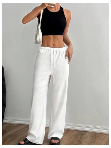 sought-after ! Women's Drawstring Waist Lounge Pants Elastic Waisted Straight Leg Casual Trousers