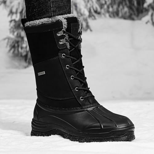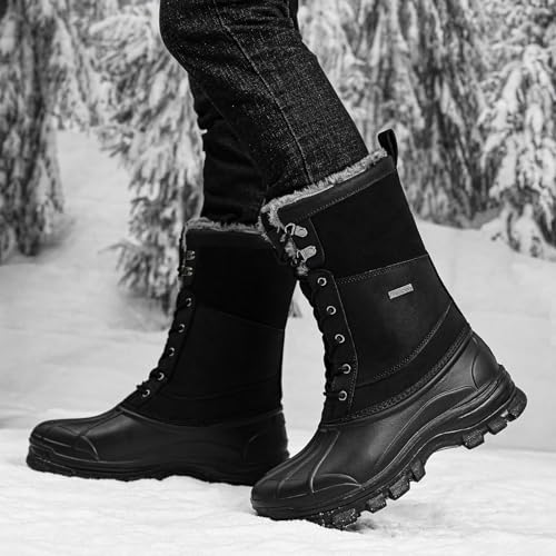 Mens Waterproof Snow Winter Duck Boots Insulated snug Fur Lined Non Slip Rubber Hiking Work Boots Casual Outdoor