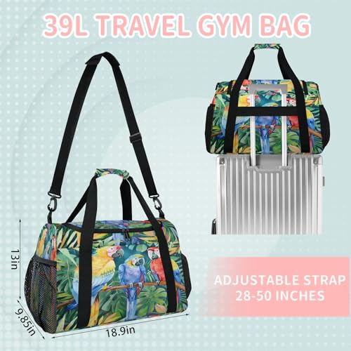 Parrot Tropical Palm Leaves Travel Bag for Men Women, Duffle Sport Gym Bag, Carry On Weekender Overnight Bags for for Airplane, Trip, Workout, Yoga, Dance 1