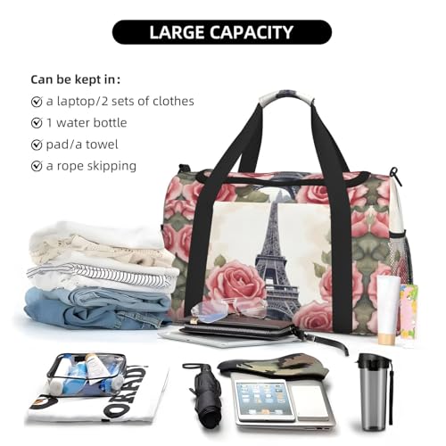 Eiffel Tower Rose Flower Foldable Travel Duffel Bag Tote Carry On Luggage Bag For Weekend Getaways, For Spontaneous Trips 7