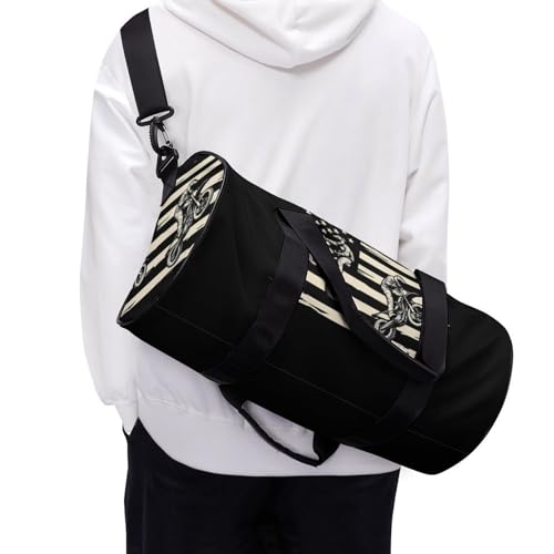 Vintage U.S.A Flag Motocross Dirt Bike Compact Gym Bag Travel Duffel Bags Lightweight Foldable Sports Tote Gymbag