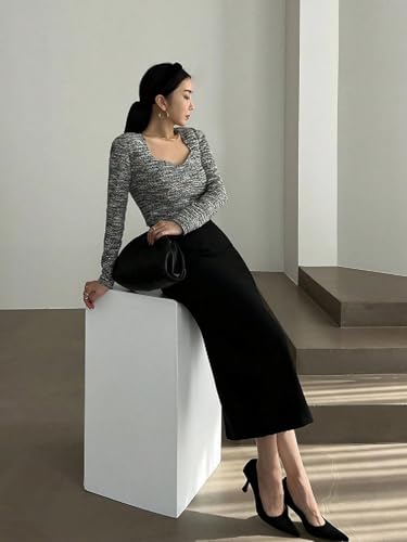 sought-after ! Trend Women's Summer Basic Skirt Solid Color Elegant Work Straight Slit Pencil Skirt For Beach