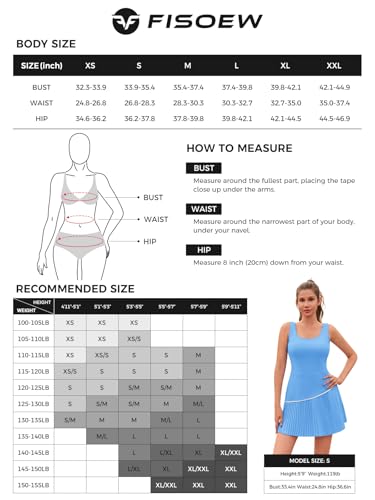 Fisoew Womens Tennis Dress with Built in Shorts and Bra Summer Sleeveless Pleated Golf Athletic Mini Dresses