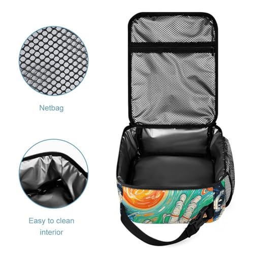 3Pcs Backpack Sets Astronaut Meteor Graffiti Print Travel Daypack 3 in 1 Lightweight Backpack Set with Lunch Bag And Cosmetic Bag 4