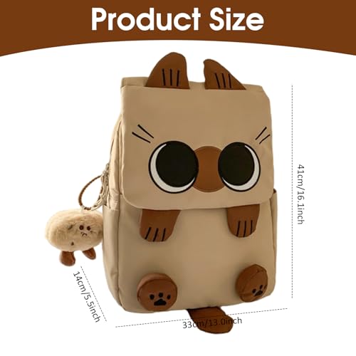 Cartoon Backpacks, Siamese Cat Cute Backpack with Chic Pendant Y2K Kawaii Large Capacity School Bag for Travel, Work, or Casual Outings, Halloween Decorations 5