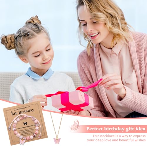 CHUNG Girls Natural Stone Beaded Bracelet Pink Butterfly Necklace 6-12 Years Old Birthday Gifts Christmas for Daughter Granddaughter Niece 7