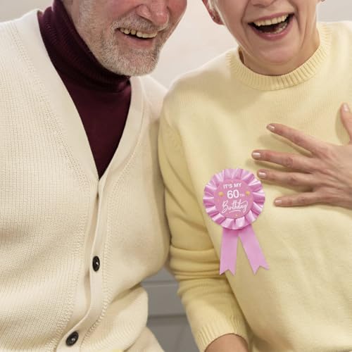 Material: PlasticMetal type: No metal typeClasp type: PinGem type: No gemstoneMATERIALS: The corsage for this birthday pin is crafted from a satin fabric material that is secured with a plastic snap structure in the center, ensuring that this pin will hold its shape.IT'S MY 60TH BIRTHDAY PIN: The center of the corsage is digitally printed on and there is a metal pin on the back that is very easy to use.DIVERTING: This adorable bauble is perfect for pairing with a dress or bag to add a touch of whimsy to the party.This cute and exclusive badge is a thoughtful gift that will make your day with friends special and memorable.We specialize in making some unique pattern designs and interesting badge styles. We hope our products can bring you joy. Perfect for everyday use. supreme materials and excellent craftsmanship ensure long-lasting durability.