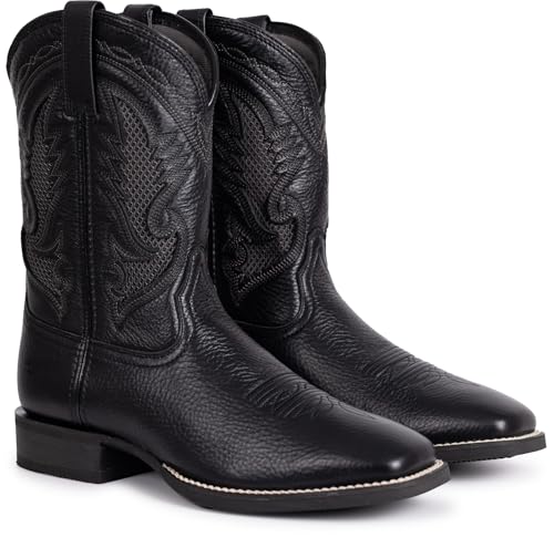 Cowboy Boots For Men Full Cowhide Leather Western Retro Boot with Square Toe Hand Painted Classic Embroidered Resistant Boot 6