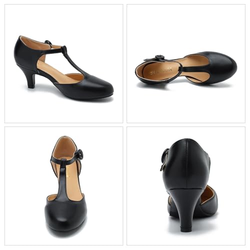 • vintage Vintage Style with contemporary Comfort: These T-strap kitten heel pumps blend retro 1920s–1950s style with updated comfort. Featuring a closed round toe, 2.36" low heel, and padded insole with non-slip rubber sole—ideal for vintage wedding shoes or office wear.