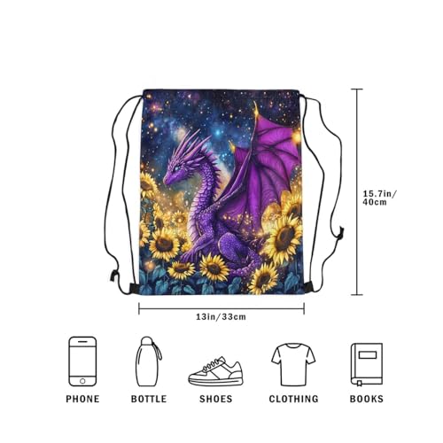 sought-after ! Erosebridal Dragon Drawstring Backpack 13x15.7, 3D Sunflower Safari Printed Drawstring Bags For Sport Gym, Galaxy Wildlife Foldable Draw String Back Bag, Yellow Purple Stars Animals String Backpack