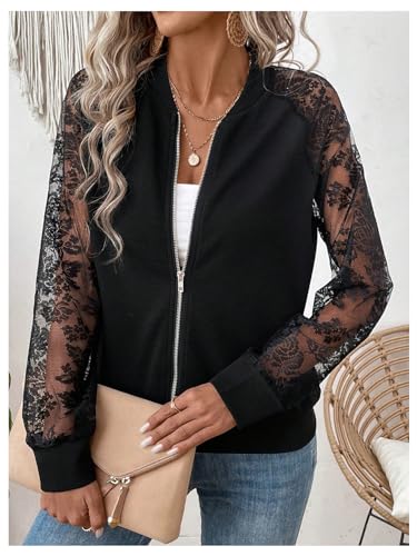 Why Choose Verdusa Women Bomber Jacket Lightweight Contrast Lace Zip Up Tops Raglan Long Sleeve Fall Outerwear?
