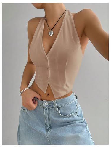 Why Choose MakeMeChic Women's Button Front Halter Crop Tops Tie Back Fitted Vest Top Suit Vest Waistcoat?