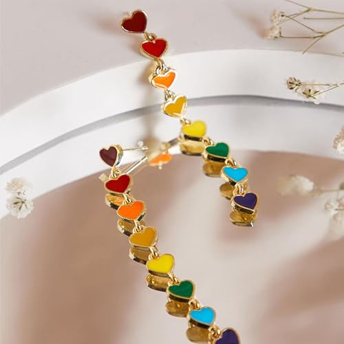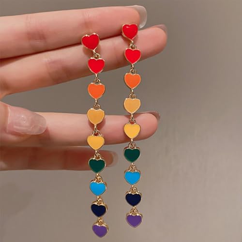 • 💖Rainbow heart tassel chain drop earrings with fine workmanship,outstanding production,keep color.Is elegant and retro.Fashion design let you stand out in crowd.💖
