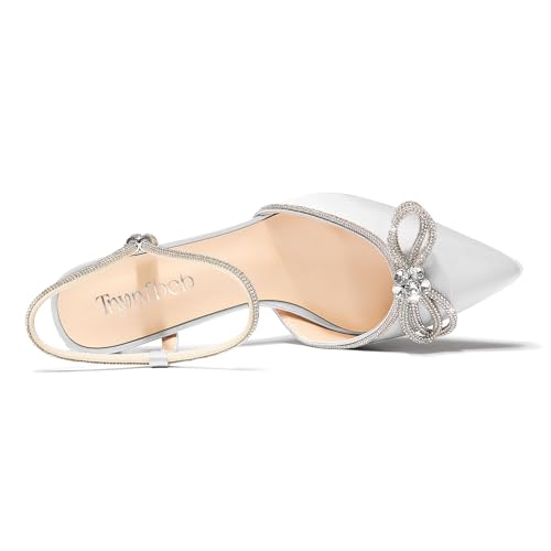 Why Choose TNYNFBEB Womens Stiletto High Platform Heel Pointed Toe Pumps Ankle Strap Slingback Rhinestone Crystal Bow-Knot Prom Glitter 3.9 Inches Heels?