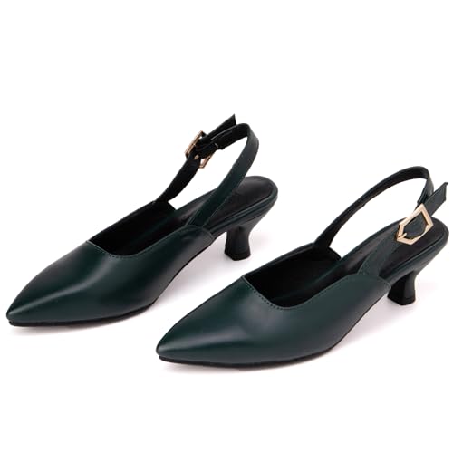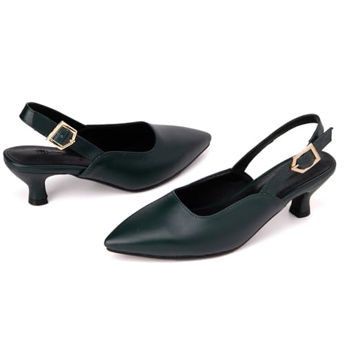 sought-after ! Women's Elegant Poined Toe Mid Block Heel Pumps Slingbacks Heeled Dress Shoes with Solid Color