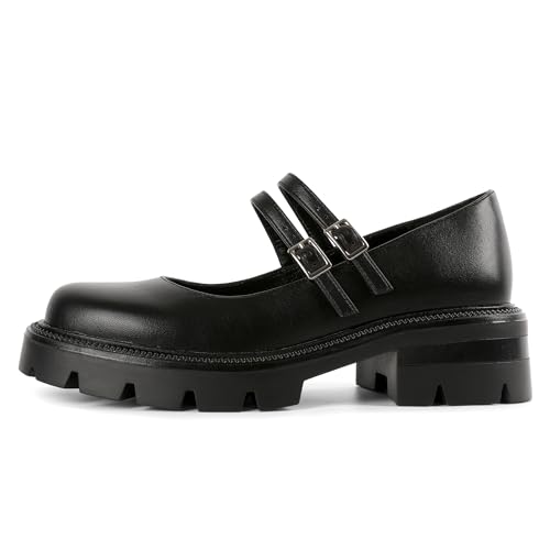 • Chunky Platform Heels: The black mary janes measures approximately 2 inches/5cm. cozy low heel mary jane shoes with two straps design are effortless to stand and walk, no foot pain