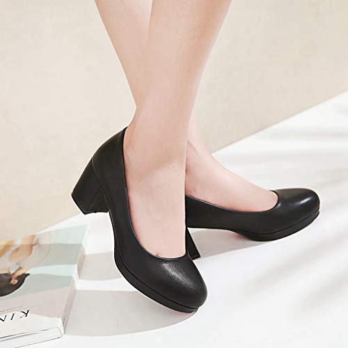 • ➤FINEST QUALITY & cozy】: Womens Ladies Round Close Toe Formal Pump Shoes, Simple Sleek vamp;effortless On/Off; Slip On Anti-slip Platform Lightweight, High Strength, Good Fexibility, Finished with Lightly Cushioned for All Day Comfy and Eco-Friendly Design. Instep ventilation pores for your comfort.