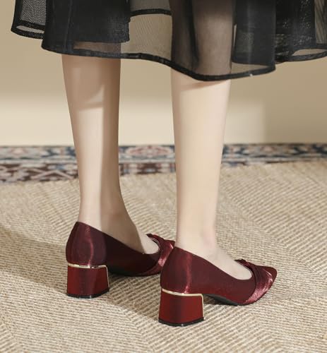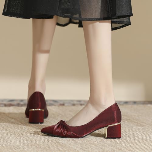LizFoYa Women Closed Pointed Toe Wedding Pumps Pleated Bridal Dress Shoes Satin Comfort Block Heels 6