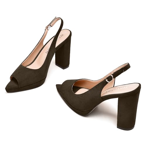 Why Choose WAYDERNS Womens Adjustable Strap Peep Toe Bridal Dress Suede Buckle Platform Solid Block High Heel Pumps Shoes 4 Inch?